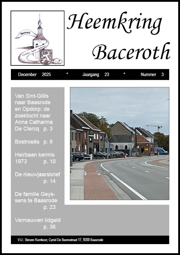 - Ofwel bestel je het bij de heemkring. In Baasrode worden de boeken gratis bezorgd, voor verzending rekenen we 9,50 € aan. Schrijf het juiste bedrag over op onze rekening BE69 7370 0667 7178 met vermelding van het aantal exemplaren en je naam en volledig adres.